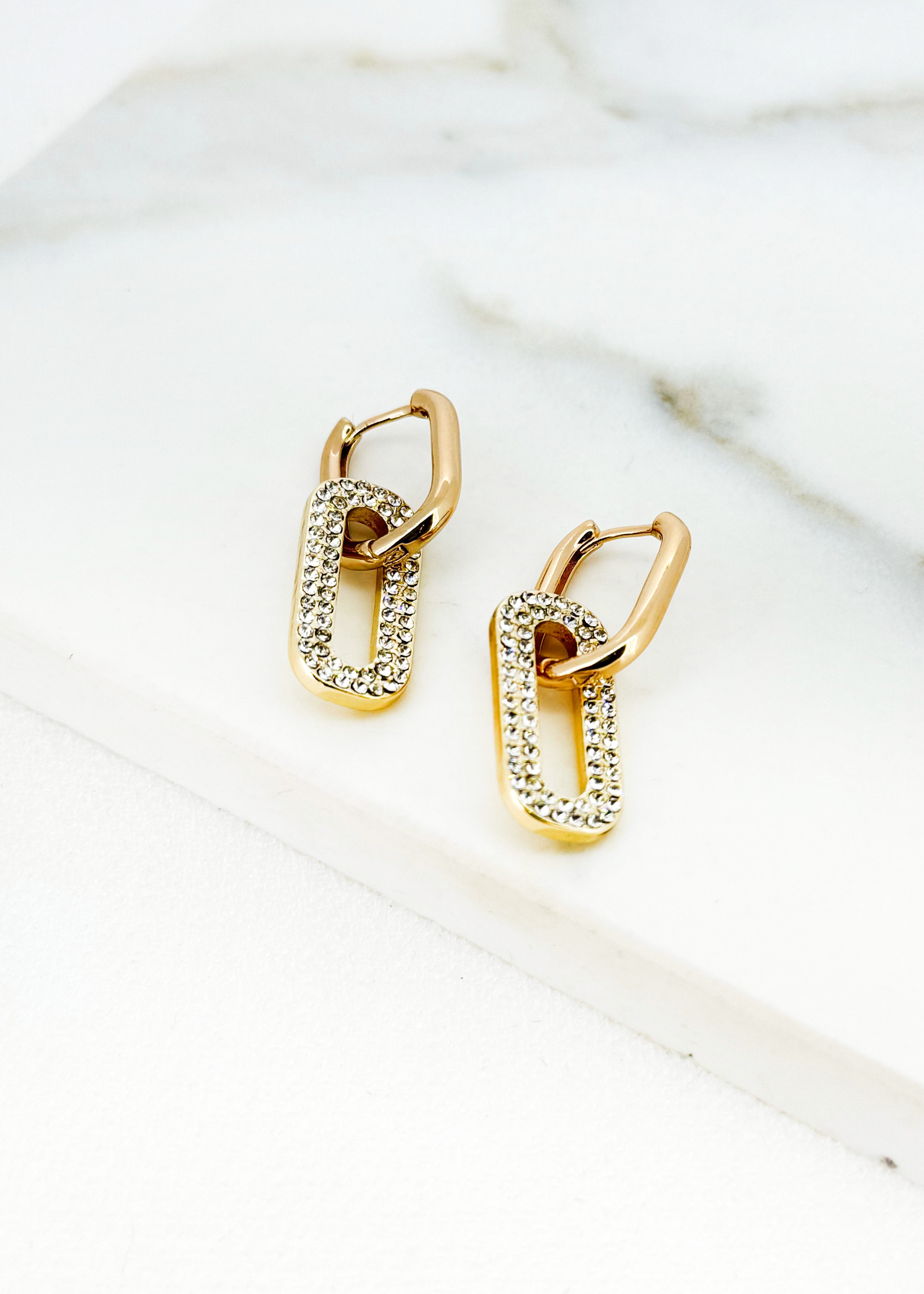 Diamanté Chain Earrings - Gold