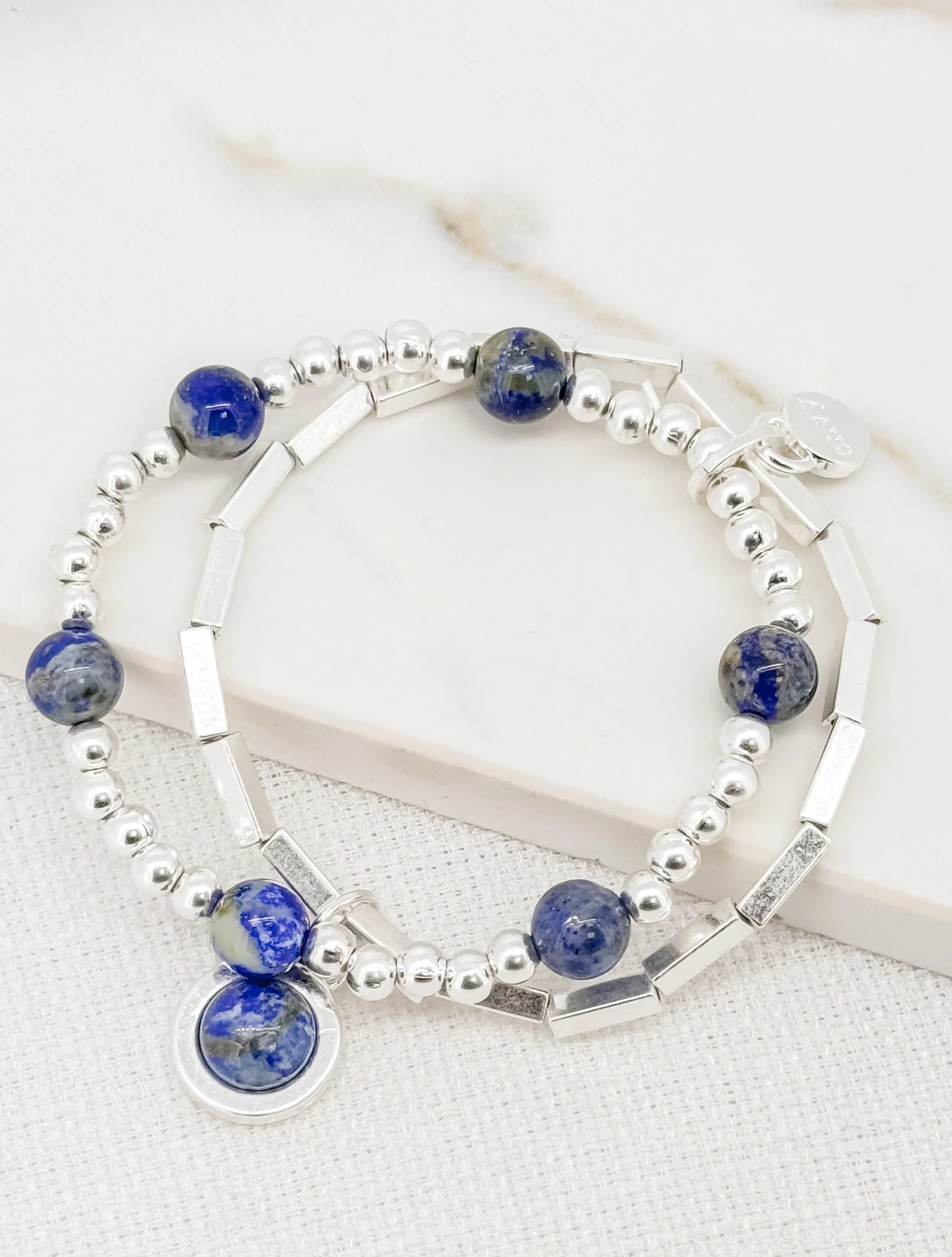 Beaded Layered Bracelet - Silver/Blue
